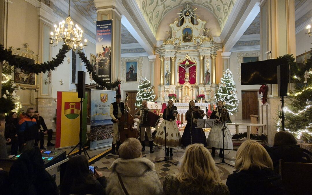 Dzisiejszy wieczór w naszej świątyni upłynął z „Kapelą na Obyrtkę”. Justyna, Natalia, Julia, Hubert i Wiesław sprawili na wielką radość goszcząc w progach naszej kolneńskiej fary. Już podczas Mszy Świętej zrobiło się niezwykle góralsko i klimatycznie, a koncert kolęd był dopełnieniem całego przedsięwzięcia. Realizacja koncertu była możliwa dzięki wsparciu Miasta Kolna z Panem Burmistrzem Andrzejem Dudą na czele oraz Gminy Kolno z Panem Wójtem Józefem Wiśniewskim na czele. W imieniu wszystkich uczestników koncertu dziękujemy za wsparcie projektu kolędowania.
